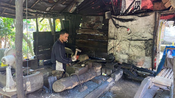 Caption foto: Seorang pandai besi di Desa Tanjung Dayang Utara, Kecamatan Indralaya Selatan, Kabupaten Ogan Ilir, tengah mengolah besi secara tradisional untuk dijadikan peralatan pertanian. Profesi ini masih bertahan sebagai salah satu mata pencaharian warga.