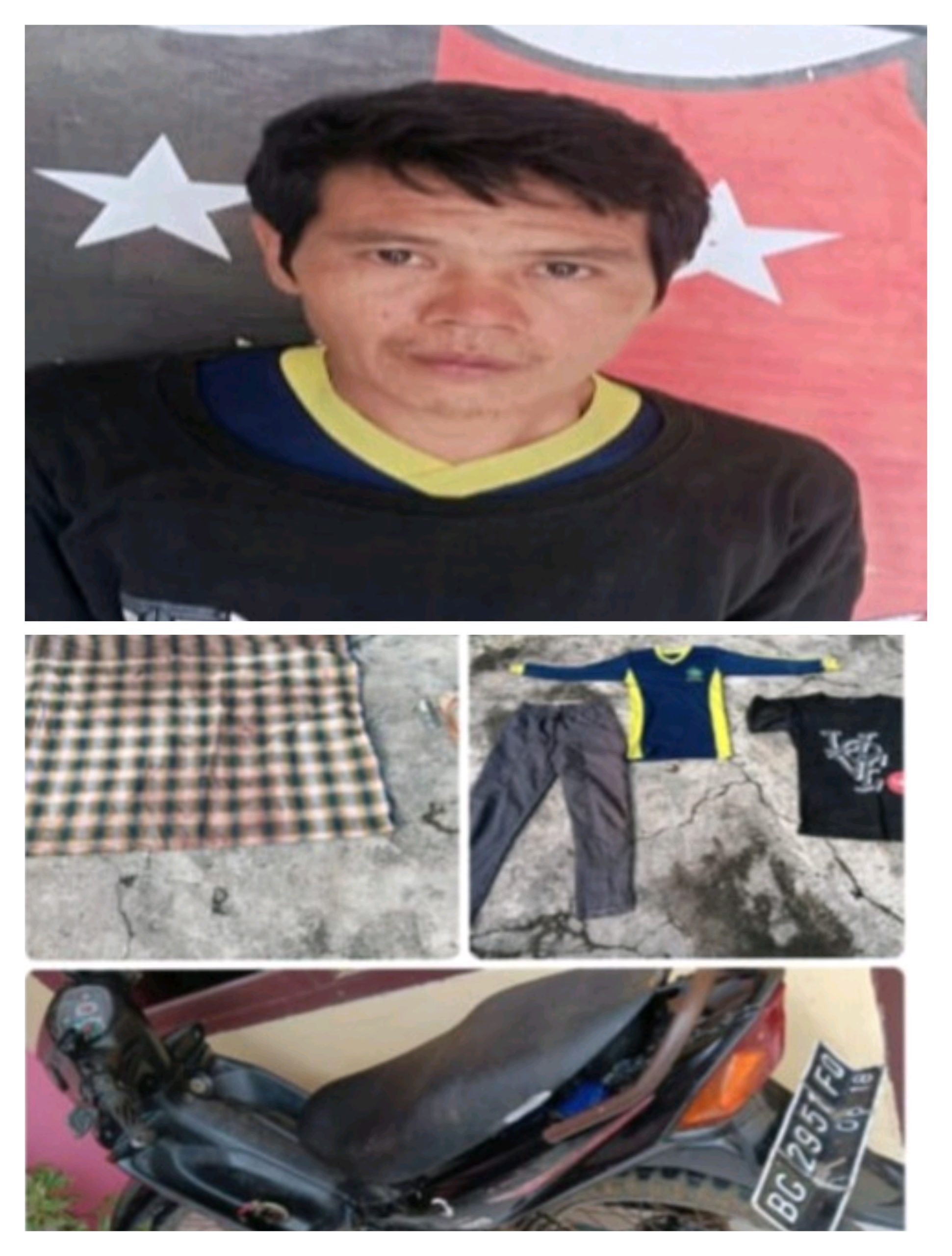 Barang bukti yang diamankan antara lain kain sarung kotak-kotak dan sandal berlumuran darah, tiga potong baju, celana panjang abu-abu, senter putih, serta sepeda motor Vega ZR hitam BG 2951 FQ.