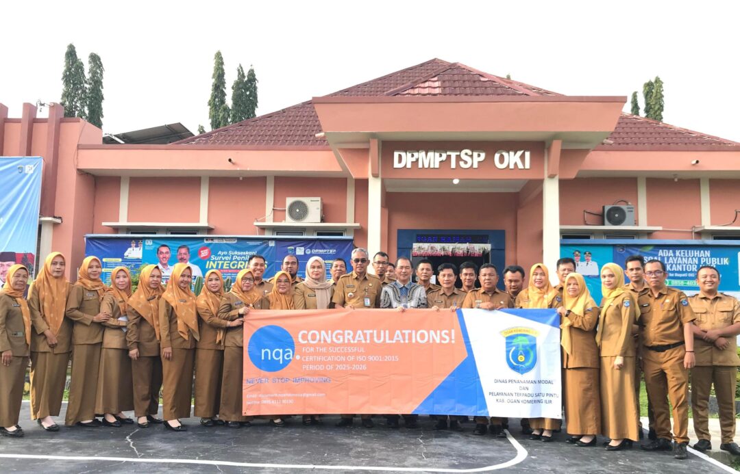 Radarsriwijaya.com, (Ogan Komering Ilir). – Dinas Penanaman Modal dan Pelayanan Terpadu Satu Pintu (DPMPTSP) Kabupaten Ogan Komering Ilir kembali mencatat capaian membanggakan. Lembaga ini resmi meraih Sertifikat ISO 9001:2015 Sistem Manajemen Mutu dari National Quality Assurance (NQA) untuk periode 2025–2026.