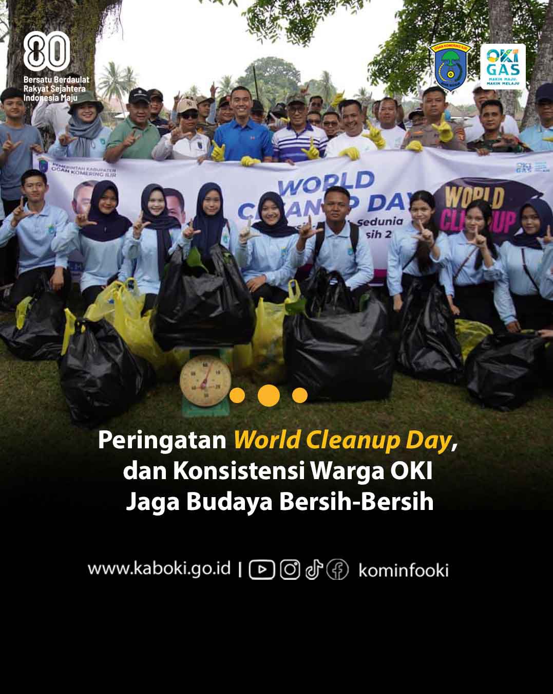 Radarsriwijaya.com, (OKI).- Pemerintah Kabupaten Ogan Komering Ilir (OKI) memperingati World Cleanup Day (WCD) 2025 dengan menggelar aksi gotong royong massal serentak di berbagai titik wilayah OKI, Sabtu (20/9/2025).