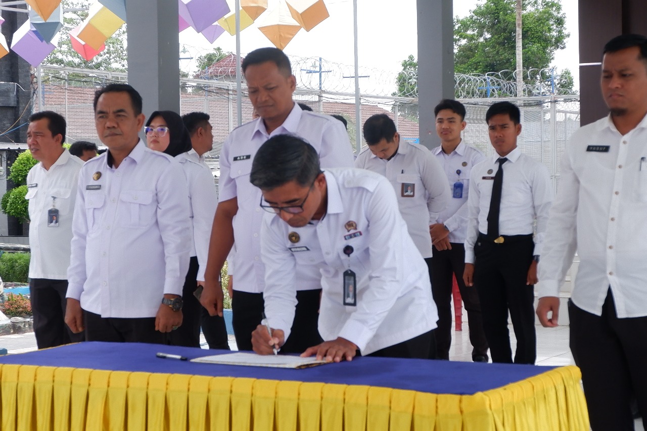 Caption : Penandatanganan komitmen bersama dijajaran lapas Kayuagung.