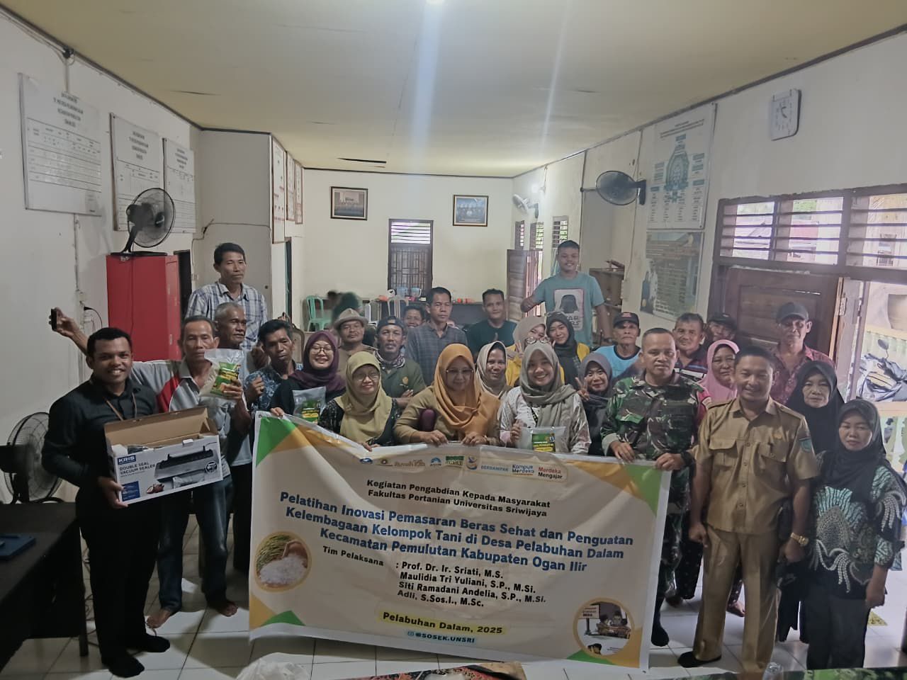 Radar Sriwijaya, (Ogan Ilir) – Tim pengabdian dari Universitas Sriwijaya melaksanakan kegiatan Pendampingan Strategi Branding dan Packaging Beras Sehat di Balai Desa Pelabuhan Dalam, Kecamatan Pemulutan, Kabupaten Ogan Ilir. Kegiatan ini merupakan rangkaian Pengabdian Kepada Kasyarakat (PKM) yang berlangsung selama tiga bulan dari 1 September 2025 sampai 7 November 2025. PKM bertujuan untuk meningkatkan pemahaman kelompok tani mengenai pentingnya branding dan desain kemasan produk, serta memberikan praktik langsung penggunaan sealer sebagai alat bantu pengemasan beras sehat.