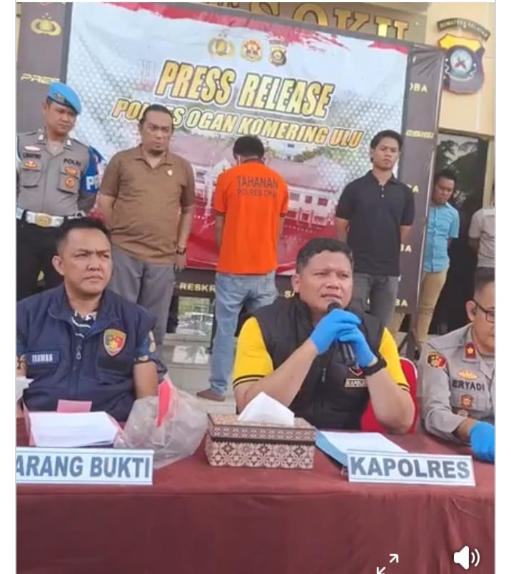 Kapolres OKU, AKBP Endro Aribowo, didampingi para pejabat utama Polres OKU dalam konferensi pers, menjelaskan kronologis penangkapan tersebut.