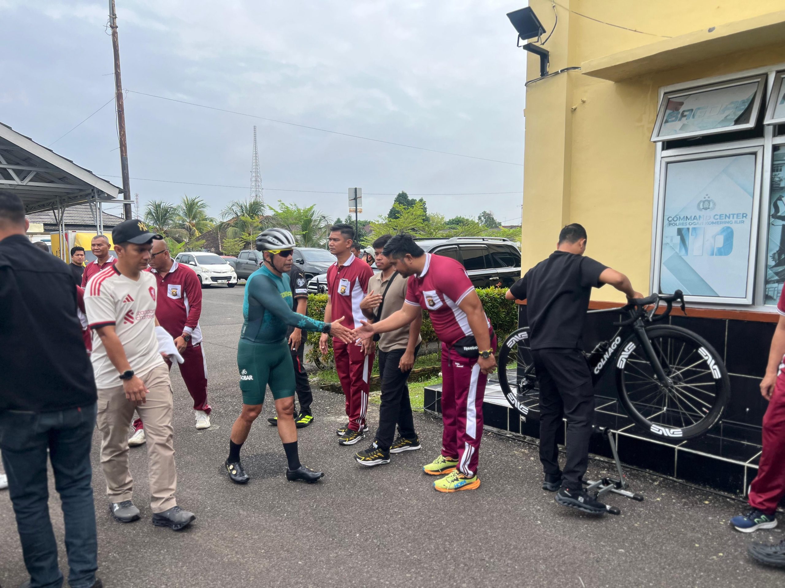 Rombongan kemudian melaksanakan water break di Indomaret Timbangan KM 52, sebelum melanjutkan perjalanan melalui Jalinsum – Simpang Celikah – belok kanan, dan finish di Polres OKI.