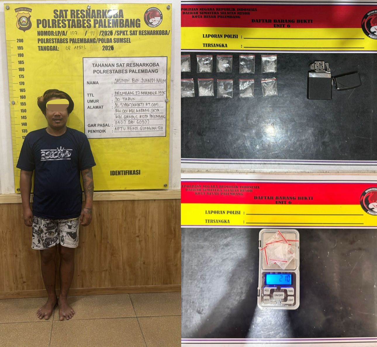 Seorang pria berinisial J (30) diamankan dalam penggerebekan di Jalan Syakyakirti, Kelurahan Karang Jaya, Kecamatan Gandus, Selasa (7/4/2026) sekitar pukul 11.00 WIB.