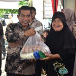 Photo : H Gadang Hartawan menyerahkan paket sembako murah kepada masyarakat. Radarsriwijaya.com,
