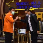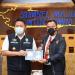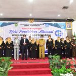 Photo : H Herman Deru Memukul Gong Dalam acara puncak peringatan HUT