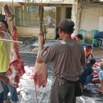 Caption : Pembagian hewan kurban yang dilakukan oleh panitia untuk masyarakat. (Foto: