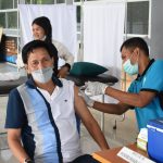 Photo : Salah seorang warga sedang divaksin. Kayuagung,Radarsriwijaya.com,- Dalam rangka program vaksinasi