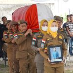 Caption : Jenazah Dikky Sakti Pratama dilepas dengan upacara kedinasan sebelum dimakamkan.